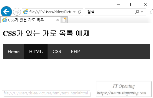 <h2>CSS가 있는 가로 목록 예제</h2>