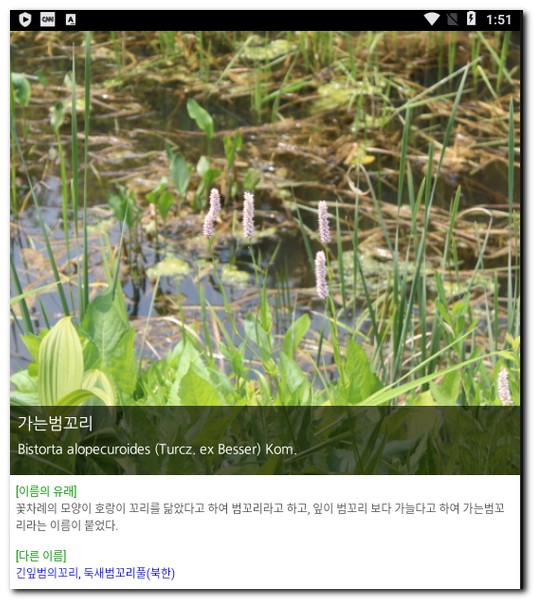 실제로 식물도감 앱을 사용해보면 어플 자체는 촌스럽게 제작되었지만 쓸만한 기능과 설명은 모두 가지고 있는걸 확인할 수 있다.