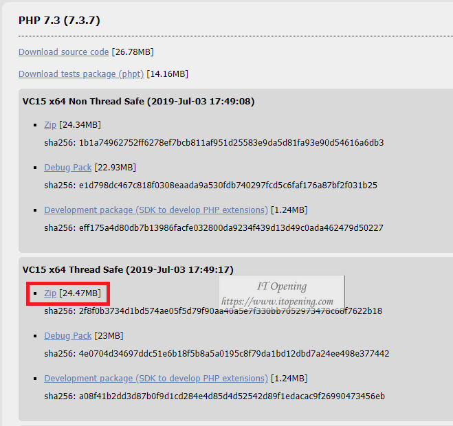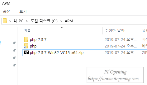 64비트 환경이라면 "VC15 x64 Thread Safe" zip 버전을 다운로드 받는다.