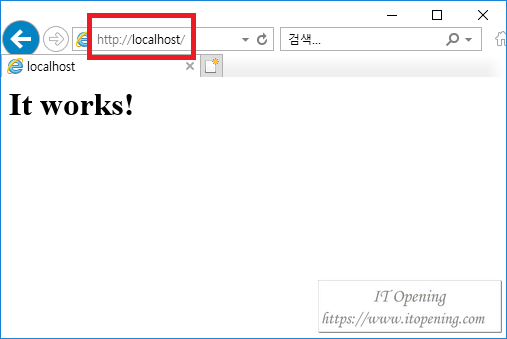 인터넷 익스플로러(IE), 크롬 브라우저를 실행해서 주소창에 "localhost"라고 입력한다.
