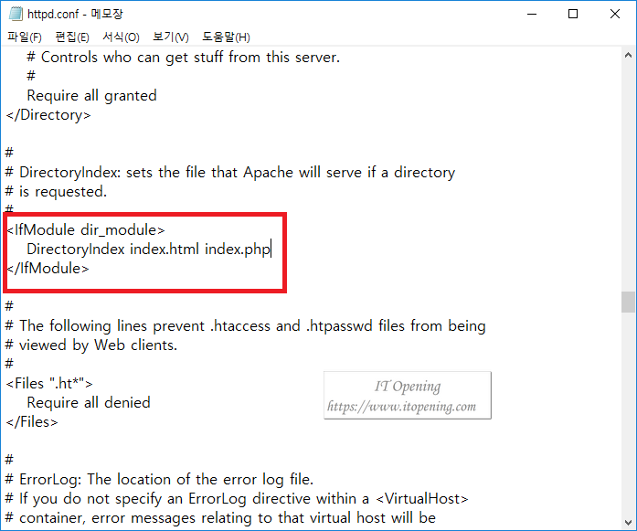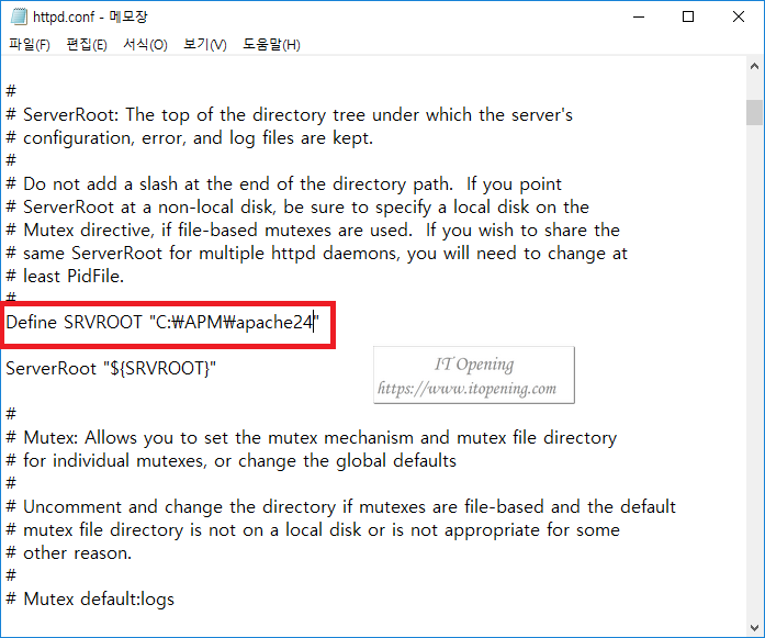 위 경로의 파일을 메모장(notepad)를 이용해서 열어서 아래와 같이 수정한다. 해당 위치를 메모장에서 컨트롤 + F를 사용하여 검색해서 찾아가면 된다.