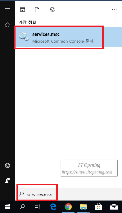 윈도우 서비스 창을 열어야되는데, 아래와 같이 services.msc 실행한다.