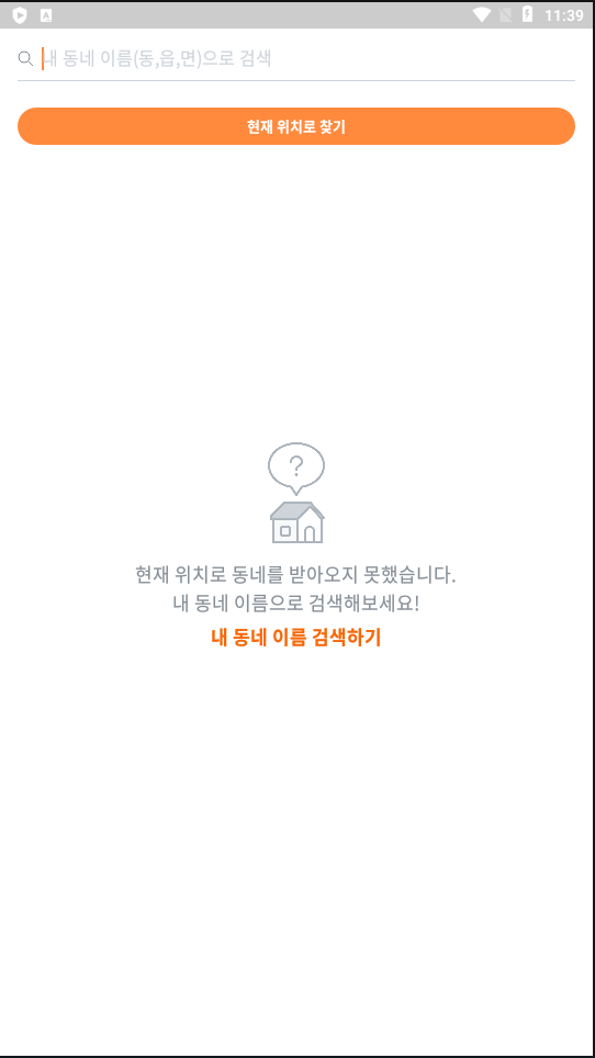 현재 위치로 찾기 가능하고, 내 동네 이름 검색을 통해서도 찾기 가능하다.