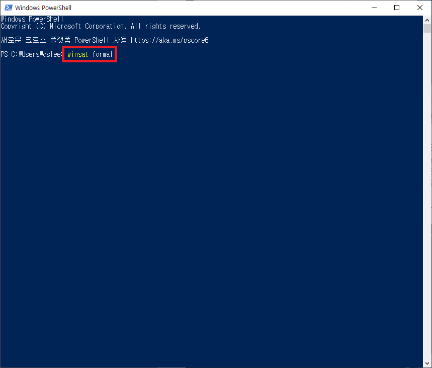 명령프롬프트(CMD)창이 나타나면서 현재 컴퓨터 사양 평가를 진행하게 된다.